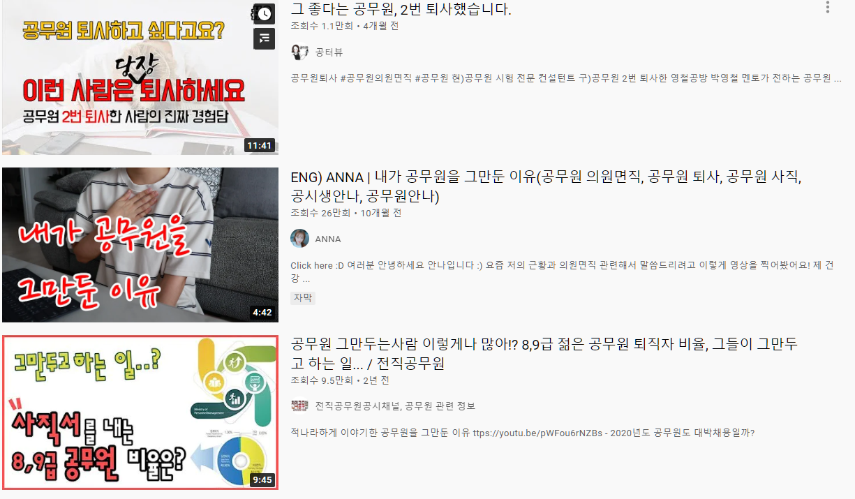 요즘 공무원을 그만 둔 사람들의 이야기를 다룬 유튜브 영상을 자주 본다.