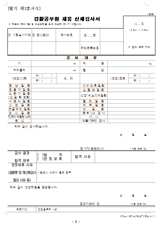 위 사진처럼 이렇게 [경찰공무원 채용 신체검사서] 양식이 있어.