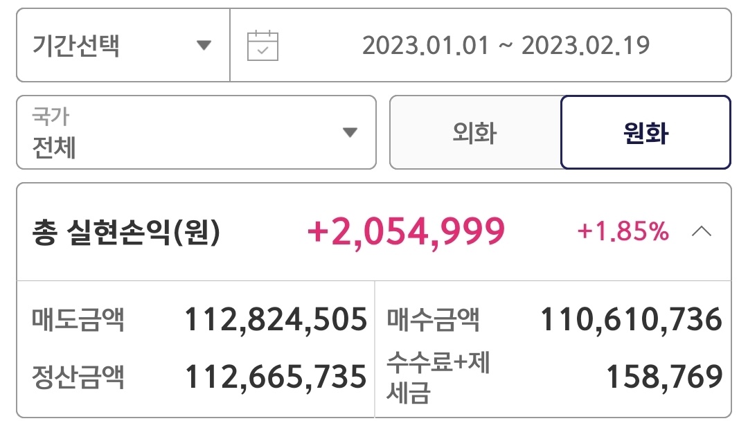 투자 수익(2023.01.01 ~ 2023.2.19)