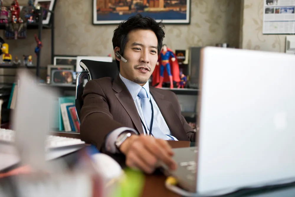 롤렉스 시계, 깔쌈한 헤어스타일, 칼정장, 찰랑거리는 사원증 목걸이, 한손에는 스타벅스 커피...