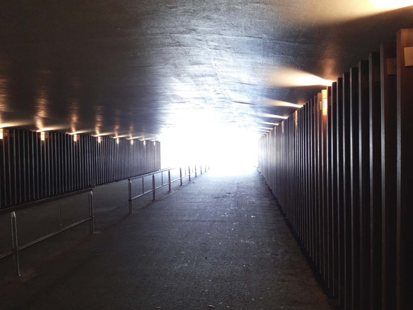 굴다리의 끝은 카메라로 그 빛을 온전히 담아낼 수 없을 만큼 환하게 빛나고 있었다.