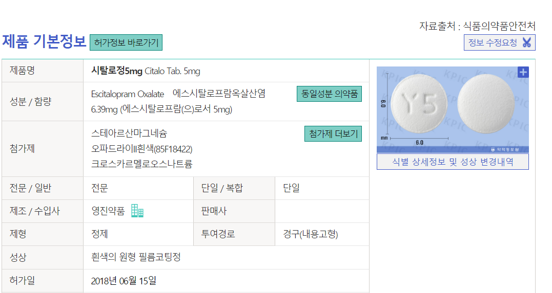 내가 복용한 약은 시탈로정 5mg 이라는 약물이며 체감한 효과는 다음과 같다.