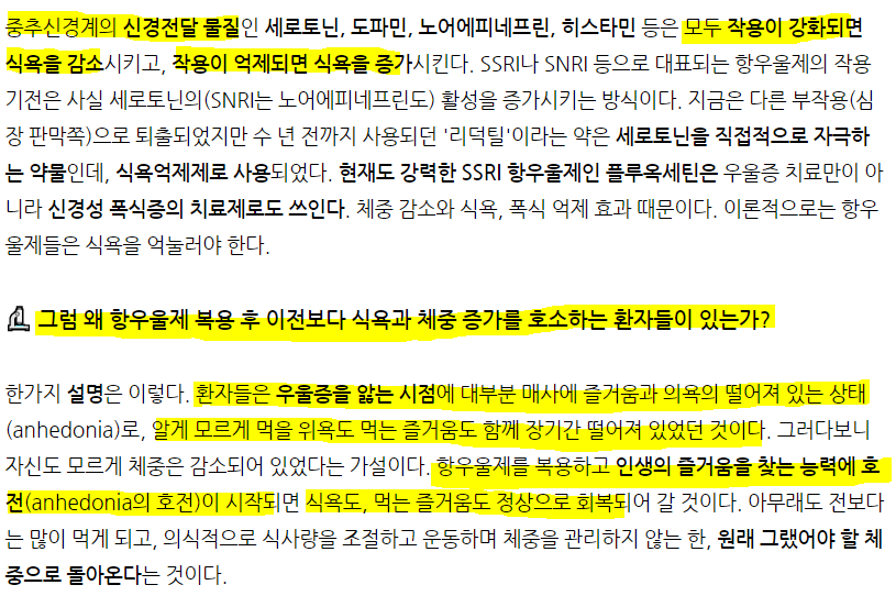 종종 항우울제 복용 이후 식욕 증가를 느끼는 사람이 있다고 한다.